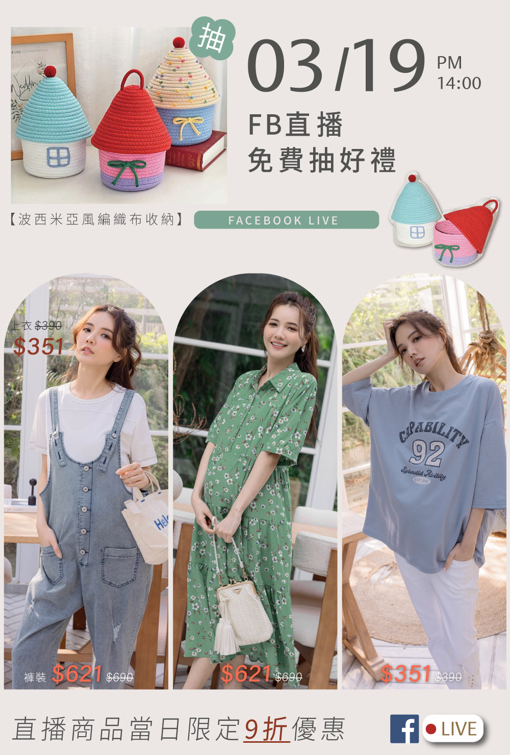 03/19 (四)下午2點FB直播📢直播商品限定當日9折 ✨全館現貨 & 國內滿千免運快速出貨✨
