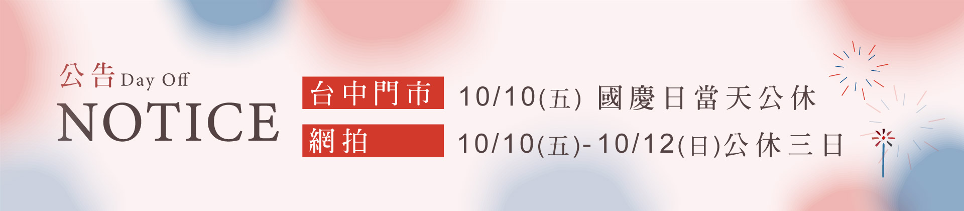 📣國慶公告💛網拍 10/10-12 連休三天 / 門市 10/10 雙十節當天公休!!