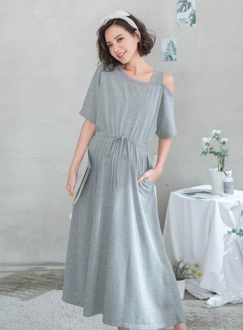 孕婦裝。口袋造型配色斜紋吊帶裙