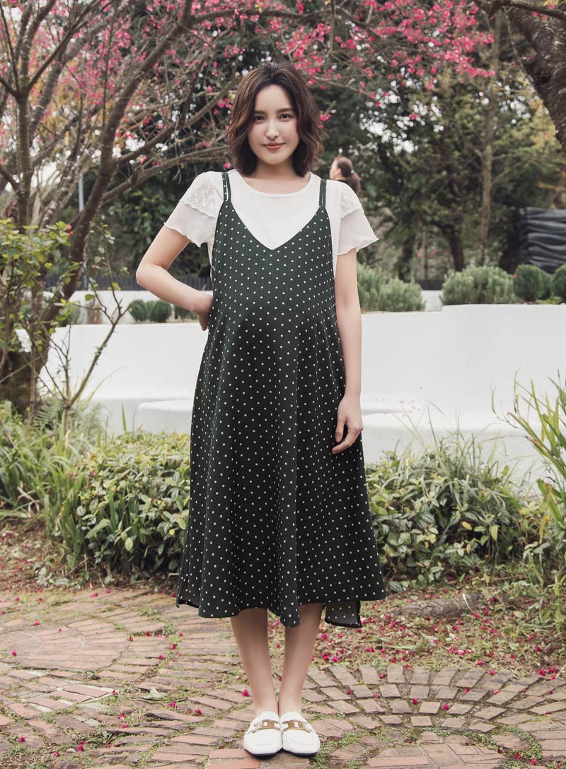孕婦裝。水玉點點雙肩雪紡吊帶裙(薄)