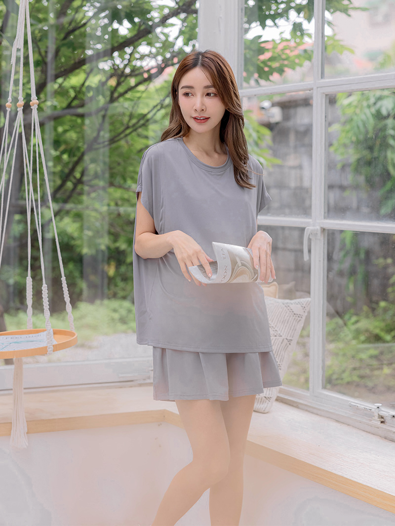 二件套款。棉紗連袖側掀哺乳衣+短褲(薄)