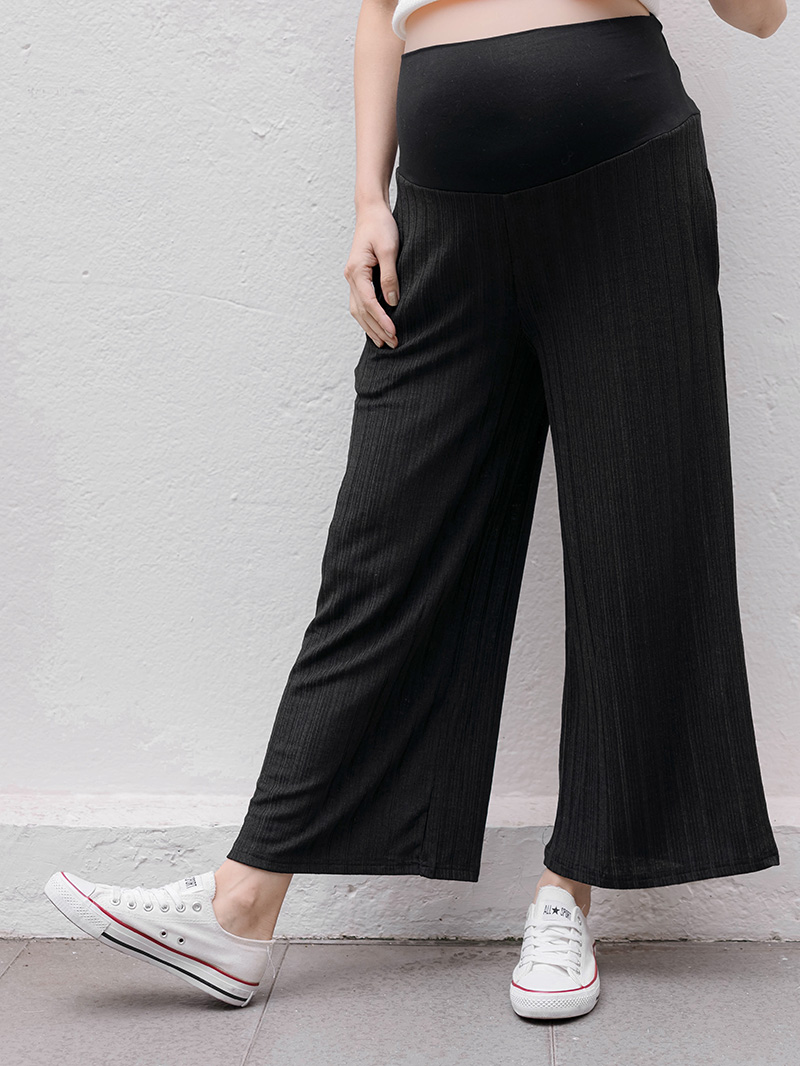孕婦褲。絲光直紋側袋瑜珈腰寬褲